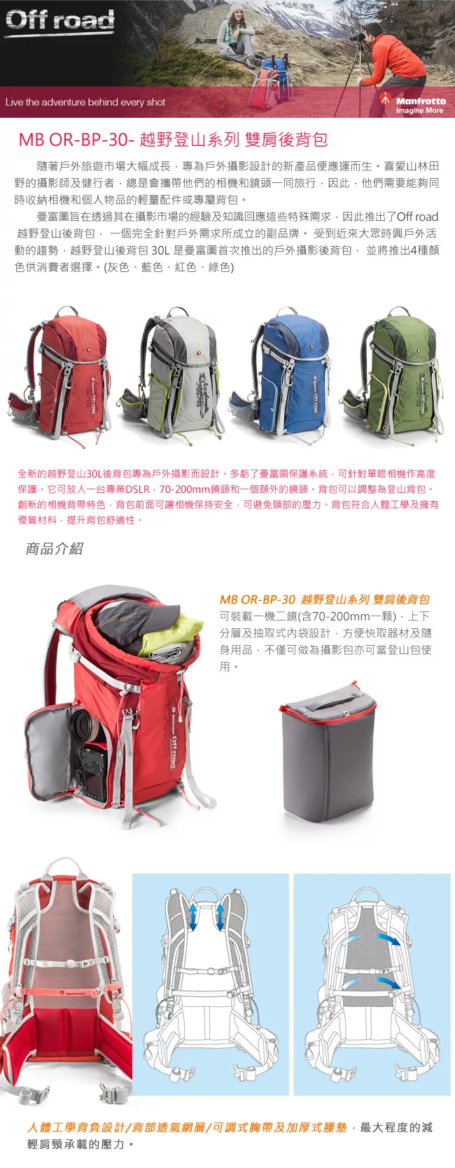 Manfrotto 曼富圖 Off Road Hiker 30L 戶外相機背包紅![]()